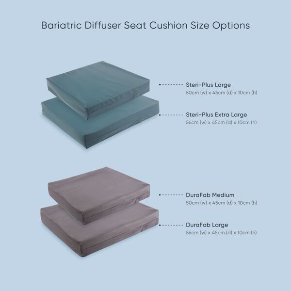 Experience improved comfort with our heavy-duty pressure diffusing seat cushion, specially designed for larger body frames over 110kg. Featuring an extra-thick 10cm foam cushion with supportive memory foam outer layers and a dense traditional foam inner layer, it provides orthopaedic support and prevents pressure sores. Available in large or extra-large sizes, it's perfect for wheelchair use or conventional seating.