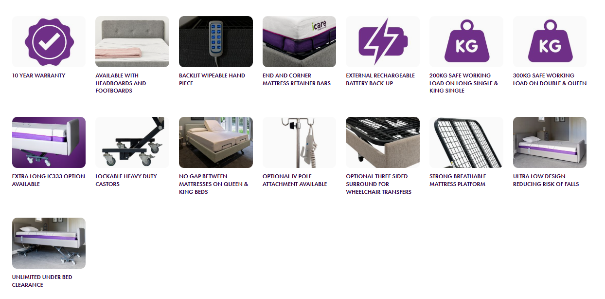 Safe Working Load – Long Single & King Single 200 kg (includes any model of iCare mattress)