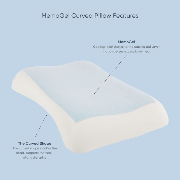 With the MemoGel Curved Pillow, you are not just resting; you are resting on a cool, supportive pillow that provides a more rejuvenating sleep.